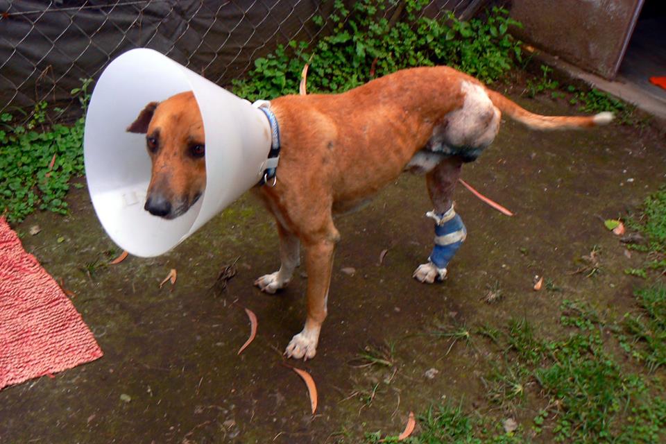 I found Oliver in some waist land near a hospital. Thankfully and english lady had seen him and gave me a call. It took a full day to catch the terrified Oliver that day! Sadly he had been the victim of back alley euthanasia, and someone had hung him by the neck from a tree. Oliver however managed to escape, but not before the rope had gone so deep into his neck it severed his wind pipe. I thought that day Oliver would not make it, but he did… he still has emotional scars from his traumatic ordeal, but he now lives happily and safely here with us at the shelter, and will do until he is gray and old 🙂