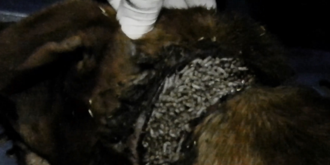 Below is when i first found Oliver… Below is the unbelievable site that were the 1000’s of maggots that had infested Olivers wound..